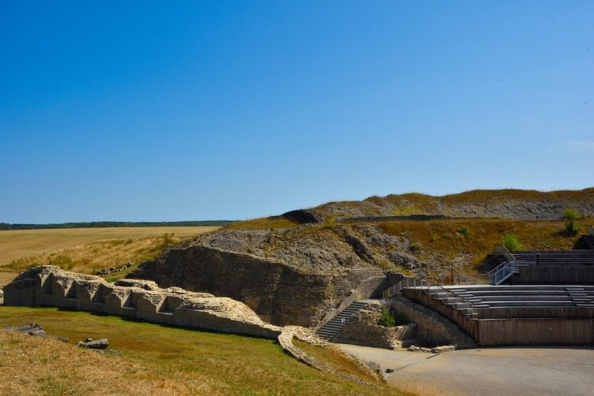 圆形剧场中心长 148 米,是欧洲最大的古罗马纪念碑之一。它可以容纳近 17000 名观众观看角斗和动物搏斗。在大圆形剧场还可以欣赏到一幅精美绝伦的巨型马赛克,这里还是一个内容丰富的考古发掘地。要找到这件高卢罗马时期的艺术品,可前往城外的米德勒沃(Midreveaux)。圆形剧场全年都会举办各种表演 ,包括马术表演、历史重现甚至热气球飞行!