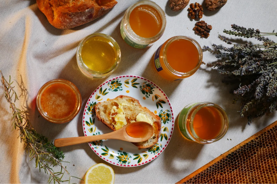 Butinarello 在普罗旺斯语中的意思是 "觅食者",这也是卡罗琳和昆廷经营的蜂蜜屋的名字。他们的蜂箱遍布蓝色海岸、普罗旺斯地区艾克斯腹地、吕贝隆和瓦尔地区。他们的蜂蜜都是有机蜂蜜。他们还采集新鲜花粉、100% 天然蜂王浆和蜂胶。他们还用自己的蜂蜡制作蜡烛。